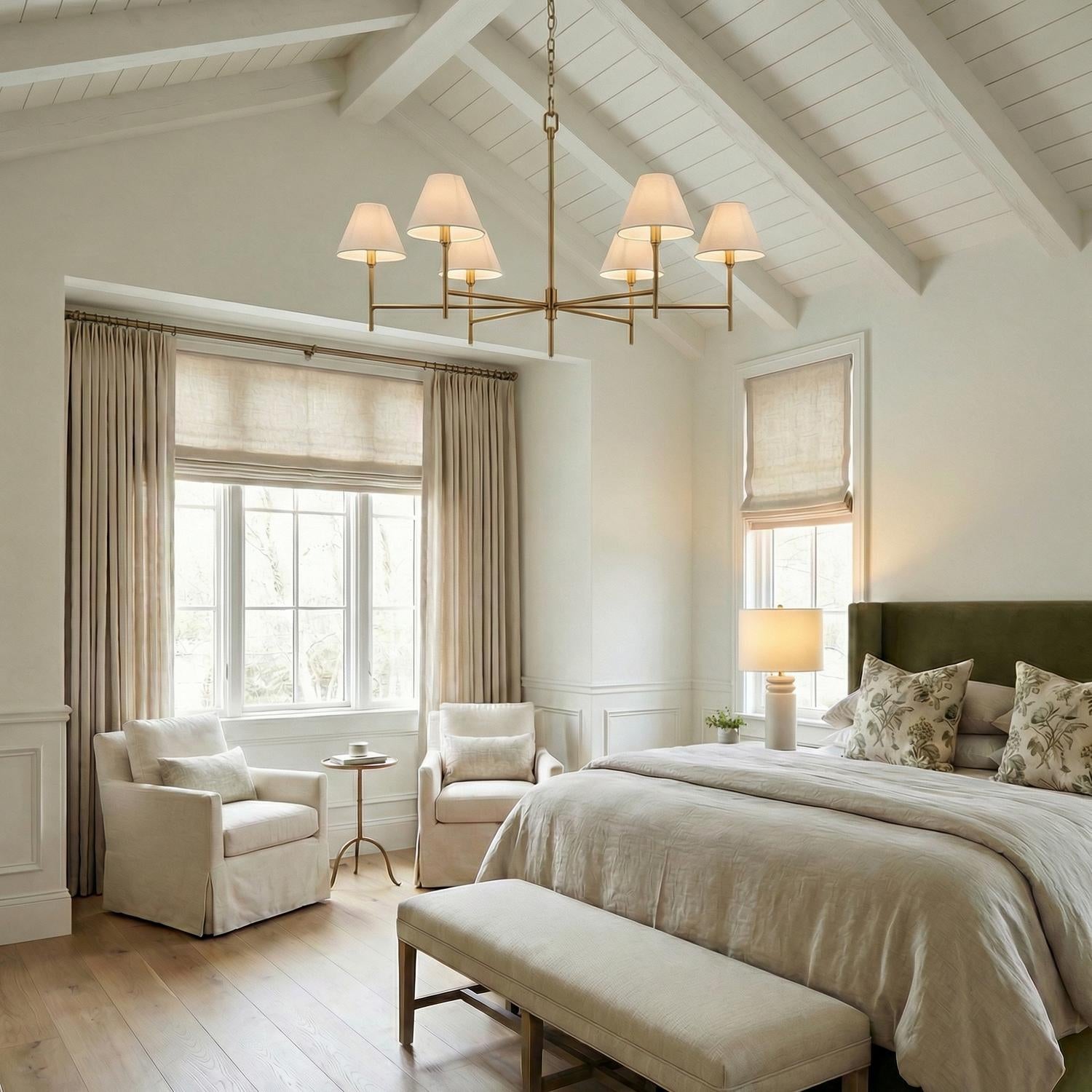Dorian 6 Light Chandelier 36", Matte Brass